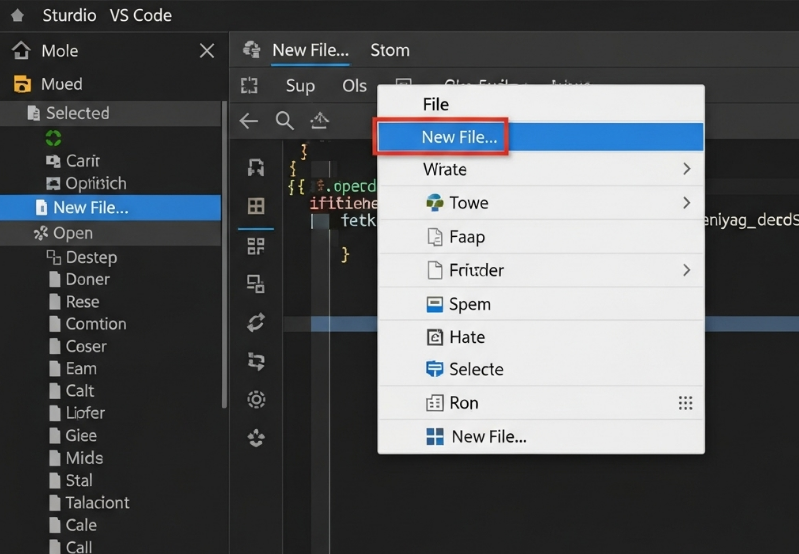 • VS Code 왼쪽 상단의 File (파일) 메뉴를 클릭하고, New File... (새 파일...)을 선택합니다. (Ctrl+N 또는 Cmd+N 단축키 사용도 가능합니다.)