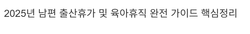 - Part 1. 출산 직후 아빠의 필수 권리, '배우자 출산휴가' 제대로 알기 (2025년 개정안 중심)