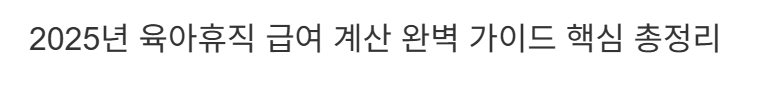 "저도 받을 수 있나요?" - 2025년 육아휴직 급여 지급 기준 셀프 체크리스트