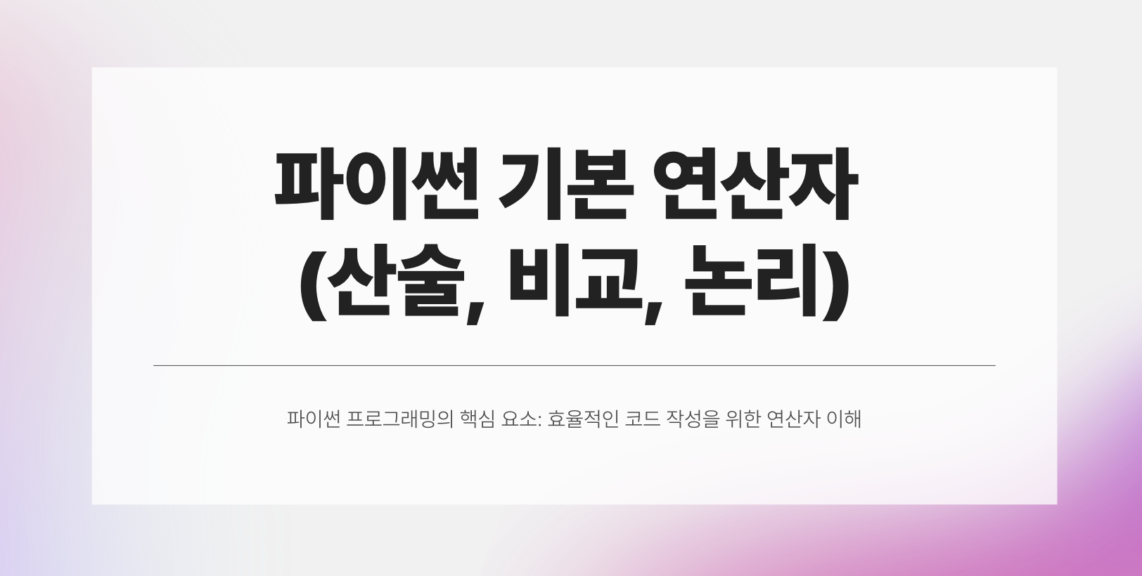 이번 시간에는 파이썬의 가장 기본적인 연산자인 산술 연산자, 비교 연산자, 논리 연산자에 대해 자세히 알아보았습니다. 이 연산자들은 여러분이 데이터를 계산하고, 조건을 판단하며, 복잡한 로직을 구성하는 데 필수적인 도구입니다.