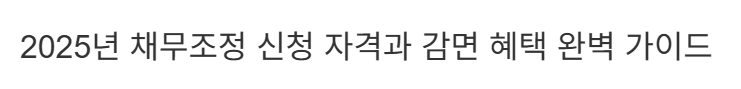 | 주요 자격 제한 | - 최근 6개월 내 신규 발생 채무 원금이 총 채무 원금의 30% 이상인 경우 - 재산평가액이 총 채무액을 초과하는 등 상환 능력이 충분하다고 판단되는 경우 |