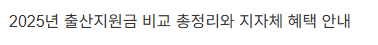 - 한눈에 보는 2025 출산지원금 비교표